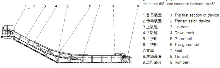 產(chǎn)品概述:SDB鏈斗式輸送機適用于輸送尖銳的、磨蝕性強的或者高溫(≤250℃)的塊粒狀物料。水泥生產(chǎn)過程中,回轉(zhuǎn)窯熟料經(jīng)冷卻后一般送入熟料庫儲存,以消除生產(chǎn)的不均衡性及熟料溫度、組分、變化的影響。水泥熟料具有較強的磨蝕性,熟料溫度雖經(jīng)冷卻仍有可能較高,為此熟料入庫(包括多個熟料庫庫頂之間的布料)均采用鏈斗式輸送機。鏈斗輸送機的輸送傾角一般≤60°,較經(jīng)濟的傾角是45°。...